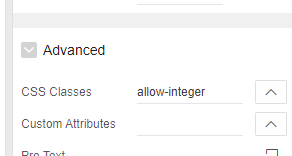 Now change the CSS Class in the "advanced" section of the field that you want this to apply to, seeting it to the name of the code which we have previously defined in the first step.